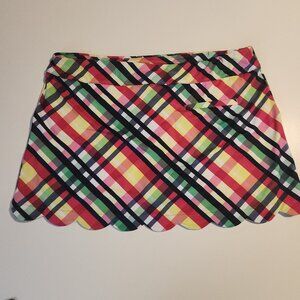 Lillie Green Skort Skirt Golf Tennis Colorful Plaid Scalloped Hem Womens XL NEW