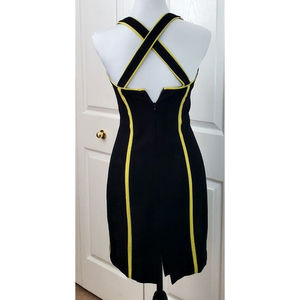 Lillie Rubin Women's Black with Green Accent Stripes Knee Length Dress with Matching Cropped full zip Jacket. Bodycon Dress with criss cross straps Back and front Zip. Very Cute and in excellent condition.
