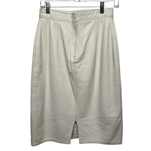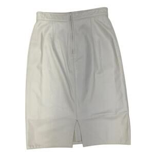 Lillie Rubin Gorgeous White Leather Pencil Skirt Back Zip Up and Bottom Split 10