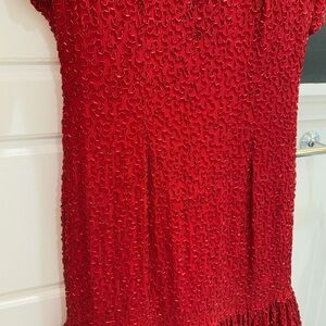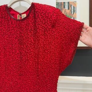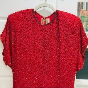 Lillie Rubin Nights New York Suzarilla Red Silk Wiggle Sequin Dress Medium