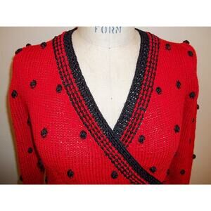 LILLIE RUBIN VINTAGE RED & BLACK POPCORN KNIT SWEATER S