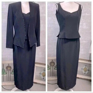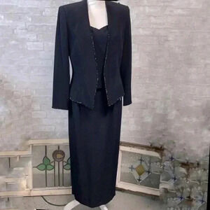 Lillie Rubin classic Vintage black beaded top & jacket sz 10 & skirt sz 6