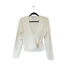 Lilllie Rubin Womens Cream V-Neck Long Sleeve Ribbed Wrap Top Size Large