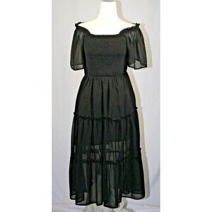 Brand new with tags Lillusory Black Tiered Cottagecore Stretch Waist Puff Sleeve Dress SZ Medium. Can be worn off the shoulder if desired.