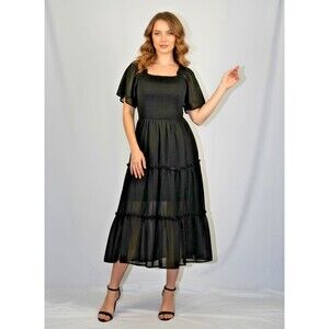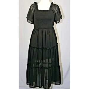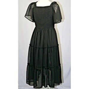 Lillusory Black NWT Tiered Cottagecore Stretch Waist Puff Sleeve Dress SZ M