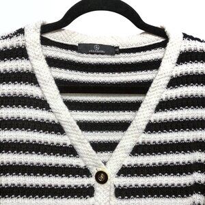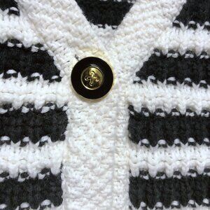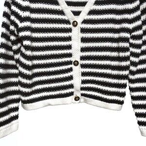 Lillusory Black White Striped V-neck Long Sleeve Sweater Top S