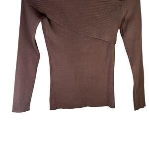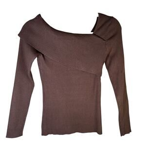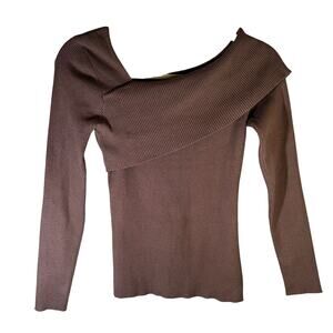 Lillusory Off the Shoulder Ribbed Sweater Brown Size XS Knit Pullover Going Out