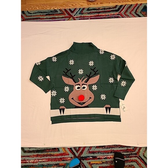 Lillusory Reindeer Ugly Christmas Turtleneck Sweater - Unisex size Medium