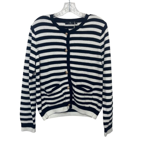 Lillusory Striped Cardigan Sweater Womans Small Black White New Winter Fall