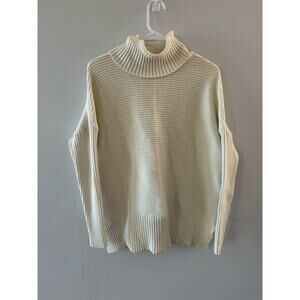 Lillusory Sweater Women's Large Cream Turtleneck Chunky Ribbed Drop Shoulder