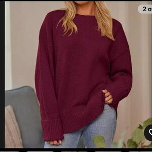 Lillusory Sweater Womens S Red Wool Blend Soft Oversized Chunky Pullover