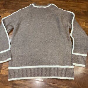 Lillusory Tan & White Contrast Trim Sweater | Women’s Large | Cozy Knit Pullover