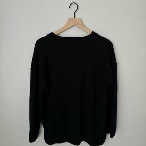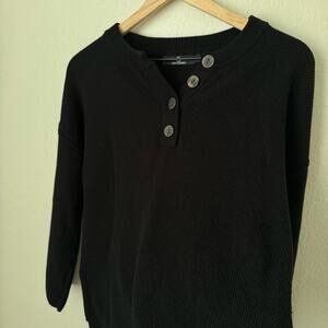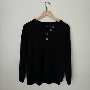 Lillusory Womens Black Waffle Knit Sweater Button Crewneck Longsleeve Size Small