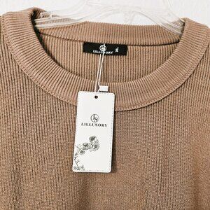 This Lillusory Honey Gold Women's Oversized Sweater features Unique seam design, Crew neck, Long balloon sleeves, side split hemline,Vertical grain cuffs which gives it a more chic flare. Its versatile design makes it suitable for casual street wear which may be dressed up to compliment a more sophisticated look. Suitable for spring, fall and winter. New with Tags. Never Worn. Excellent Condition.