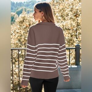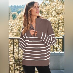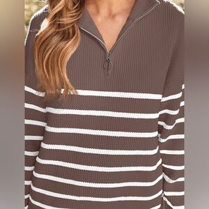 Lillusory Women’s Large Striped Brown and White pullover 1/2 zip sweater