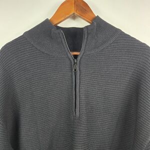 * Black ribbed knit pullover with 1/4 zip