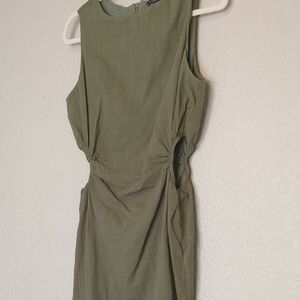 Lillusory green knee-length sleeveless tank dress with side cut outs