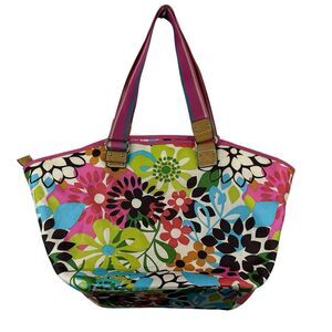 Lilly Bloom Purse Travel Tote Floral Multicolored Eco Friendly Double Handle Lg. Great unused condition, see photos for details. Measurements in photos and are approximate.