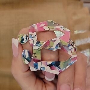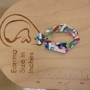 Beautiful pink/green/white kaleidoscope mosaic. Lightweight acrylic with hypoallergenic posts.