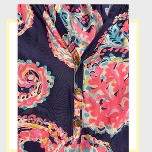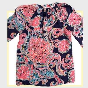 Lilly PULITZER Multicolor 100% Pure Silk Pattern Print Fun Blouse Top Small