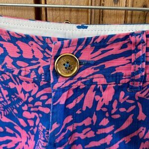 Lilly Pulitzer 0 Short Pink Blue Callahan Zebra Pockets Zipper Button