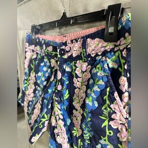 Lilly Pulitzer 00 Callahan Foxy Foxglove Chino Shorts Floral Flat Front Pockets