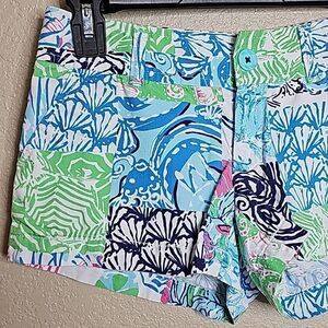 Lilly Pulitzer 00 the Walsh shorts Osterville patchwork print Blue green in excellent condition