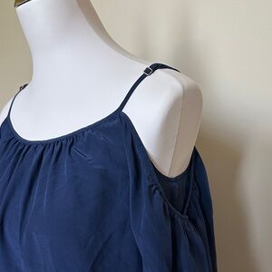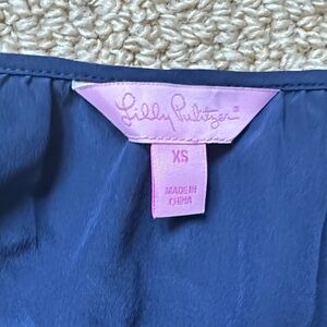 Lilly Pulitzer 100% Silk Navy Blue Cold Shoulder Mini Dress XS Adjustable Straps