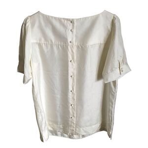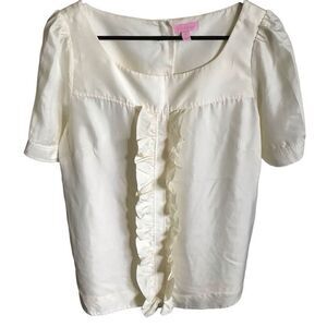 Lilly Pulitzer 100% Silk blouse top ivory cream Size 10 short sleeve