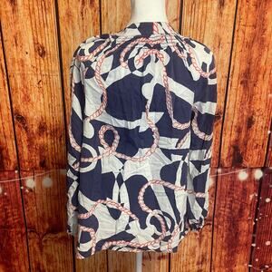 Lilly Pulitzer 100% silk Booze Cruise Elsa nautical blouse sz Small lightweight bright navy red white