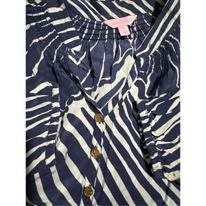 Lilly Pulitzer 100% silk Elsa shimmy shell stripe long sleeve XS very cute top no stains or rips white blue color buttons on the neck line