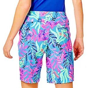 Women's Lilly Pulitzer Size 16 UPF 50+ Reid 9" Luxletic Porto Blue You’ve Been Spotted Ocean View Golf Shorts