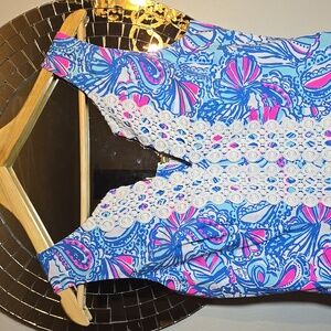 Lilly Pulitzer My Fans Blue Pink White Shift Dress/Cover-Up