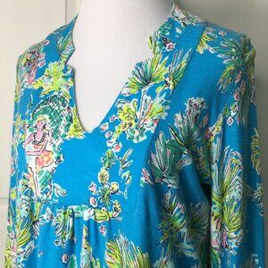 Lilly Pulitzer 24965 Mandy V Neck Jungle Toile Glam Tunic Shirt Size Medium