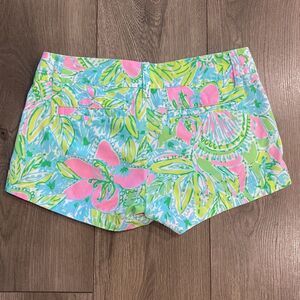 Lilly Pulitzer 2.5” The Walsh Short Coconut Jungle Multicolor Cotton Shorts Size 00. Excellent condition! 100% non-stretch cotton. Four functional pockets. Front zipper and button closure. See pictures for measurements.