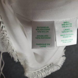 This Lilly Pulitzer 25150 Adira Size 2XS White Off Shoulder, Wrist Ties with Fringe Dress is pre-owned and in good condition. The measurements are: Shoulder to Shoulder: 15.5" Bust: 33" Length: 31.5". Please review the photos to make your own assessment, thank you!