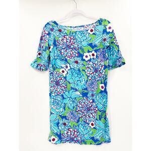 Lilly Pulitzer 26257 Somerset Blue Floral Print Boat Neck Shift Mini Dress XS