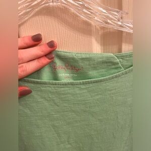 A slight burnout fabric with a teensy hole in it (pictured) but the most beautiful light green color Lilly Pulitzer t-shirt dress. Can be dressed up or down, but it's the perfect addition to your spring wardrobe with a green cardigan!
