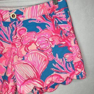 Lilly Pulitzer 5" Shorts Pink Blue Buttercup Short Scalloped Hem Sz 0