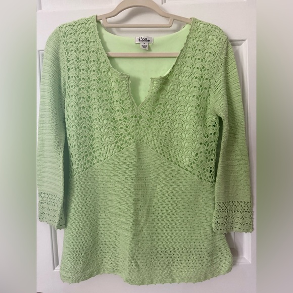 Lined crochet light green top. Ideal for casual outings.
