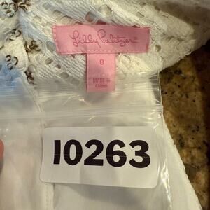 Lilly Pulitzer 8 Calera Jungle White Lace Gold Beaded Shift Dress Preppy Vaca
