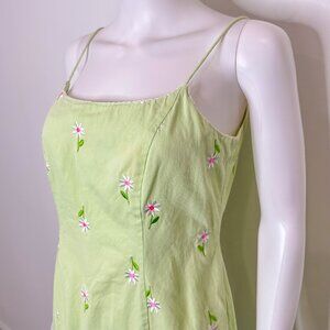 Lilly Pulitzer 90s Floral Embroidered Mini Summer Dress in Green Vintage Sz 10P