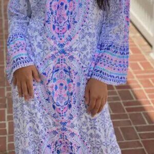 Bohemian aesthetic meets Lilly chic in our show stopping Abigale Midi Dress. The easy-fit silhouette shows off an off-the-shoulder neckline, long ruffled sleeves, and a ruffle at the hem of the midi-length skirt. A self sash cinches the whole gorgeous design together. It's easy to look fab from sun-up to sundown in this delightful dress.