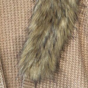 Lilly Pulitzer Adelaine Faux Fur Sweater Cardigan Gold Camel Long Size Medium
