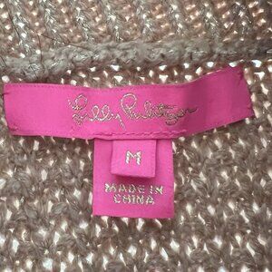 This excellent used condition Lilly Pulitzer Adelaine Faux Fur Sweater Cardigan in Camel/Tan is a stylish and cozy addition to any woman's wardrobe. Made from a blend of polyester, cotton, and acrylic, this long knit cardigan features long sleeves and luxurious faux fur trim accents. With a solid color, metallic thread accents, and a classic cardigan style, it is perfect for the winter and fall seasons.