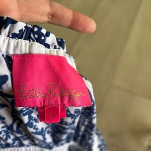 Lilly Pulitzer Adia Maxi Sundress Women's size L Blue White Tropical print