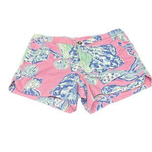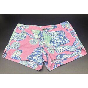 Lilly Pulitzer Adie Barefoot Princess Pink Blue Shell Shorts Sz 4 Coastal Beach