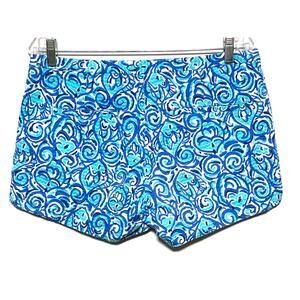 Lilly Pulitzer Adie Chasing Tail Fish Shorts Blue Coastal Tropical Beachy Size 4