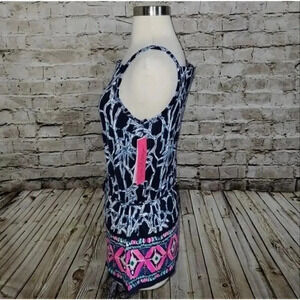 NWT Lilly Pulitzer top size XS. Multicolor includes: blues, white, pink, and green. Sleeveless. Belted. Style is Adley Top in High Tide pattern. Bust flat 16.25", length 26.5", side splits 7". Good condition.