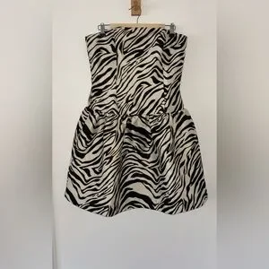 Make a bold statement with this chic zebra print strapless dress. Perfect for any occasion, this dress combines style and comfort effortlessly.